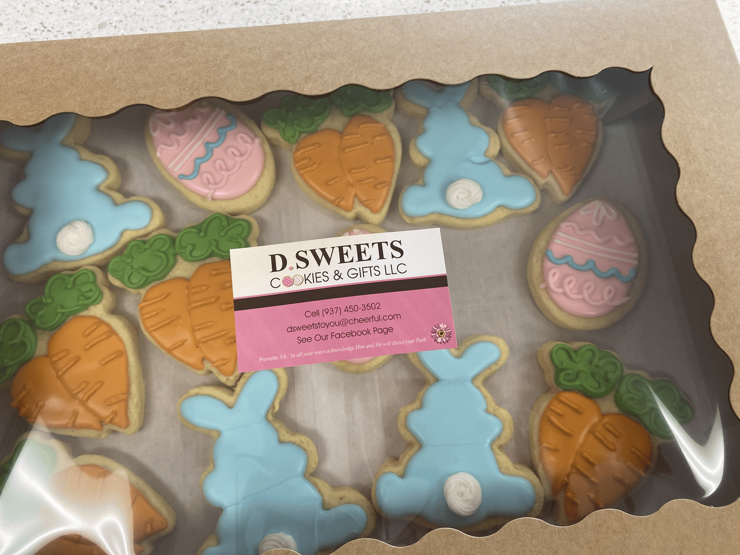 A dozen of our freshly baked iced cookies, with assorted Easter designs.